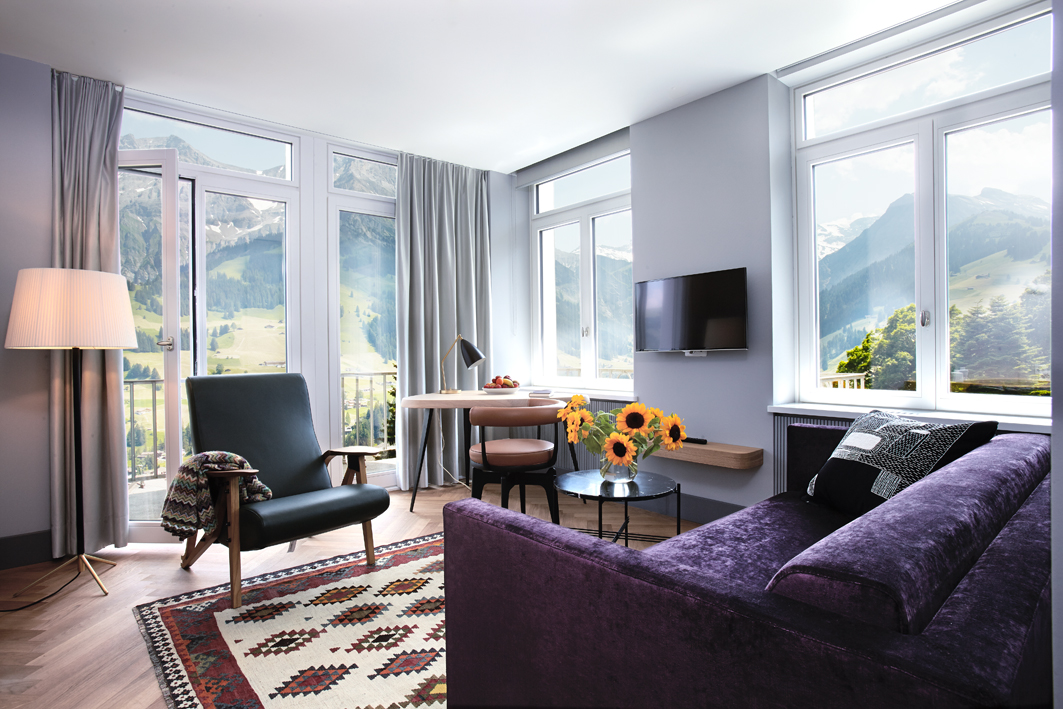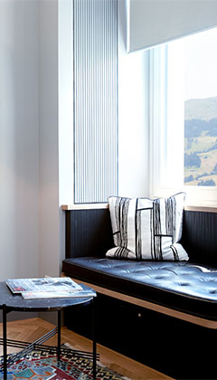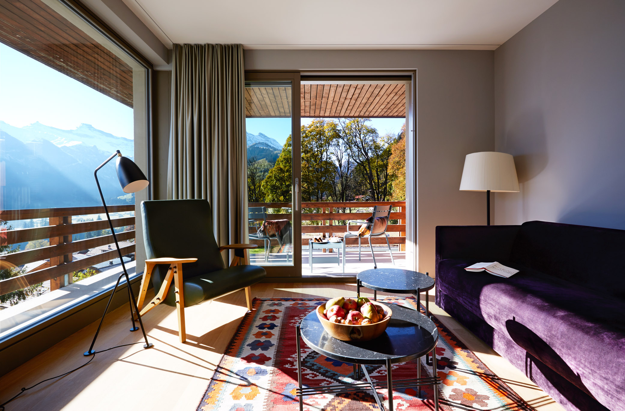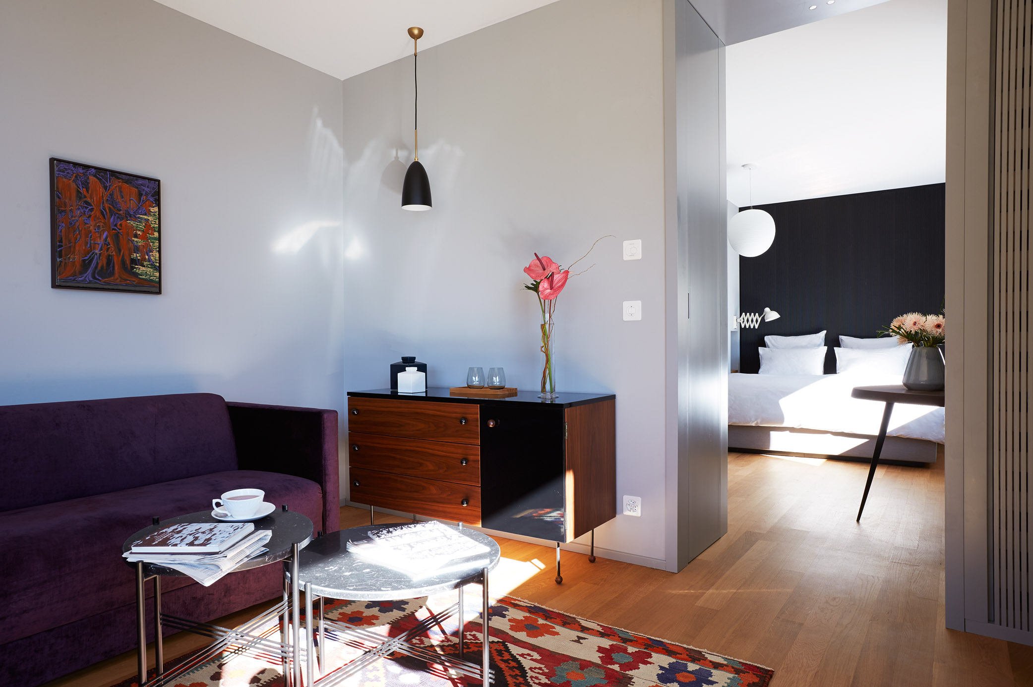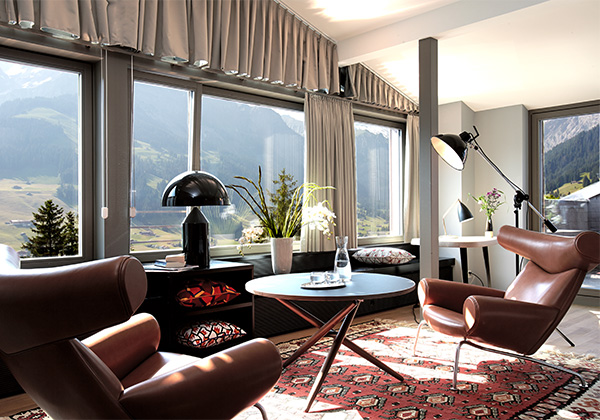 Comfortable living with abundant space and peace and quiet as well and the southern views; these are the benefits of the «Privilege» suites and junior suites. Warm brown and red tones, great comfort and the most beautiful elm and walnut wood give a feeling of being well cared for and secure. The classic furniture by Gerrit Rietveld, Norman Cherner and Konstantin Grcic are ideal to just sit and relax, to indulge yourself and to enjoy.