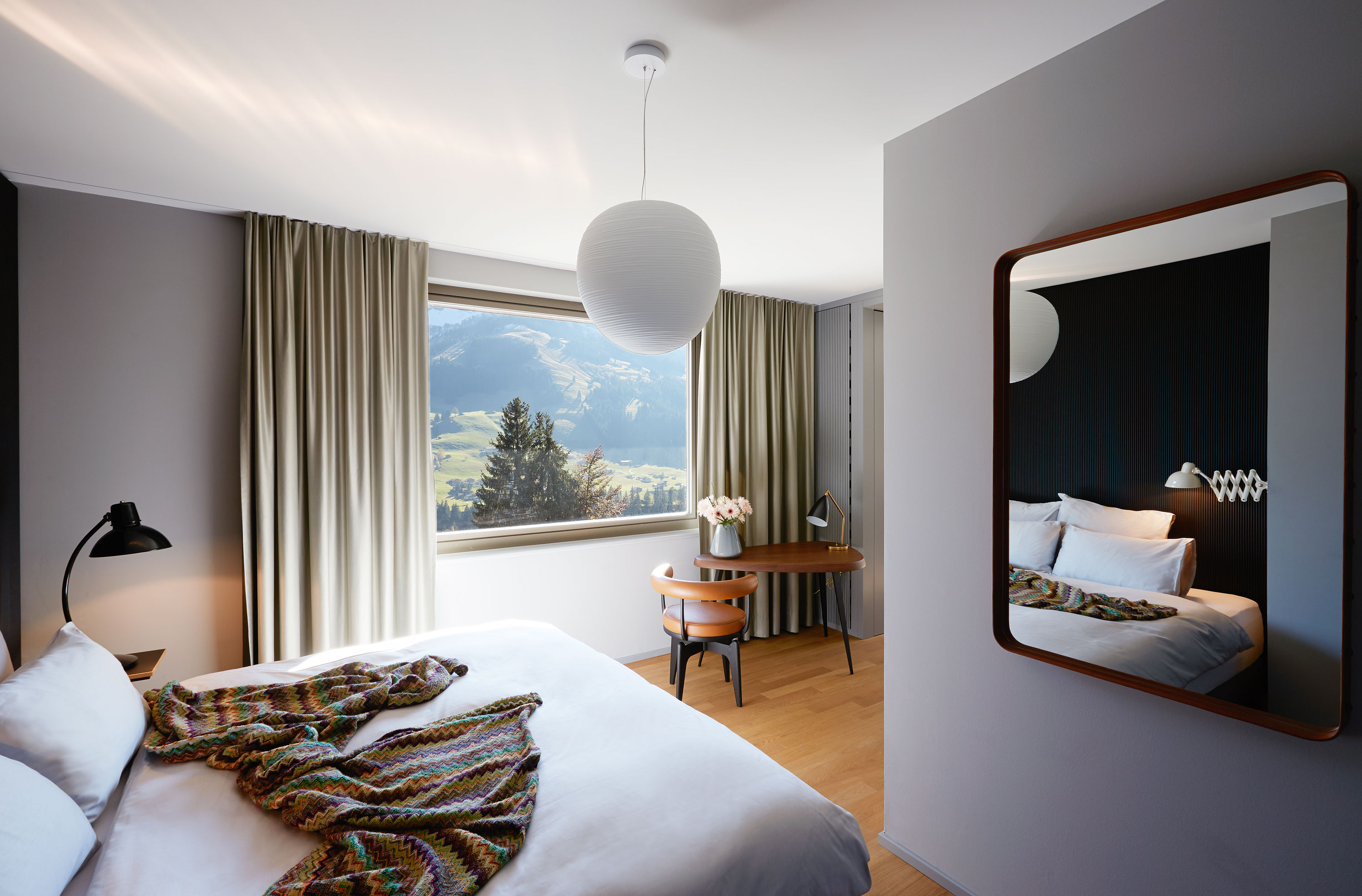 If you don't want to miss out on the mountain views, the south-facing Classic rooms are the ideal choice. They are sunny and bathed in light, and are also suitable for longer stays. Beautiful oak parquet flooring, combined with comfortable kilim rugs, delightful details and charming classic mid-century furniture by Carlo Mollino and Charlotte Perriand make these rooms and junior suites unique. High-end box-spring beds made in Switzerland guarantee a restful night's sleep.Room facilities