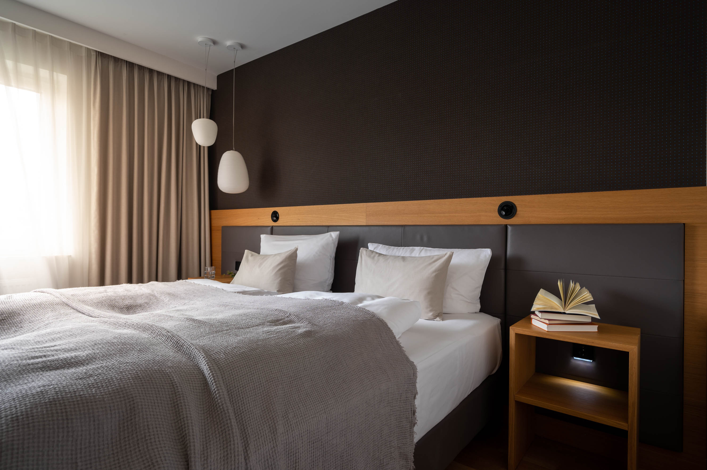 No booking requests by phoneThe double room for smart travelers! Natural, high-quality materials such as loden and oak floorboards create a pleasant and relaxing atmosphere with a modern design.